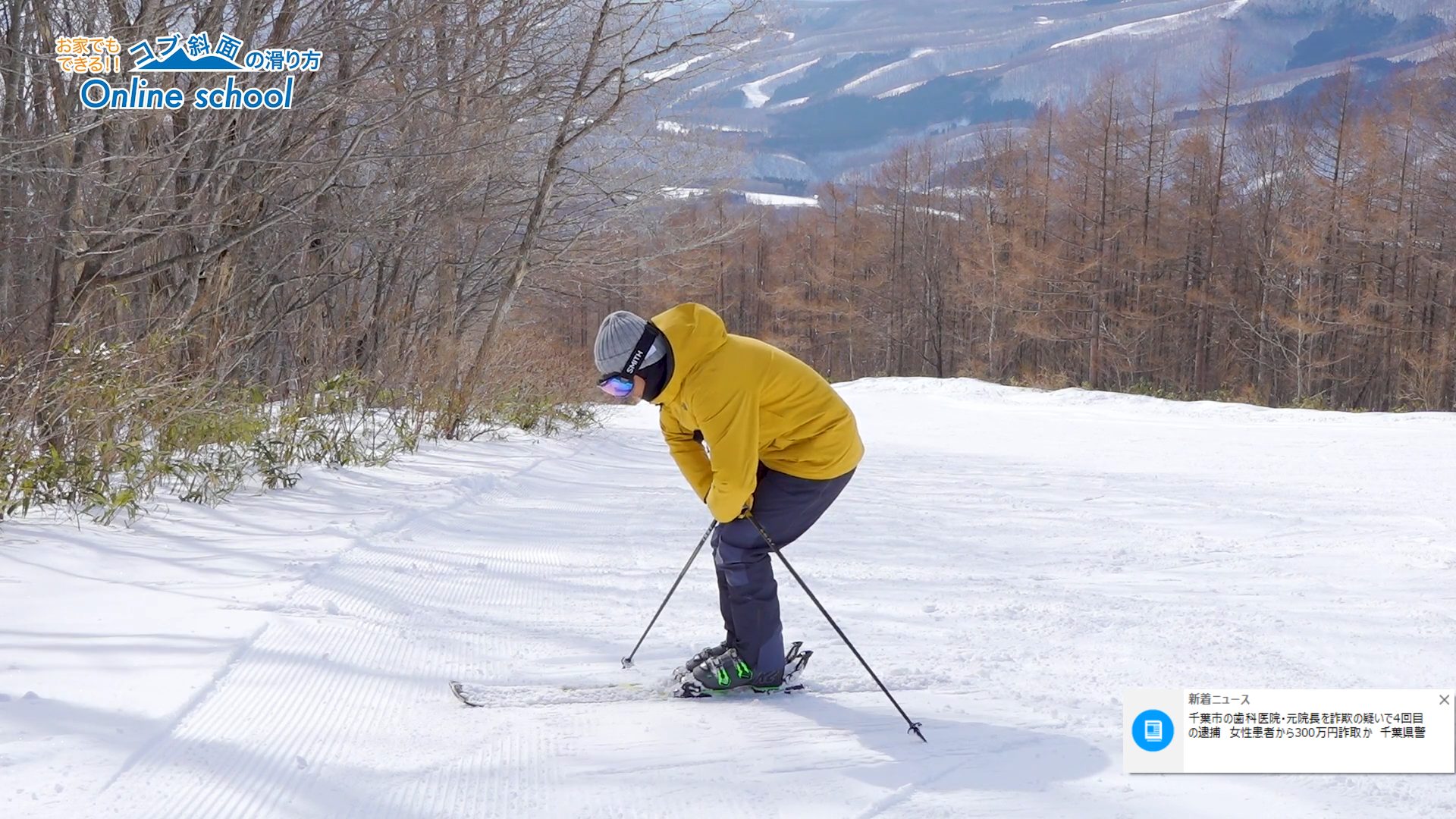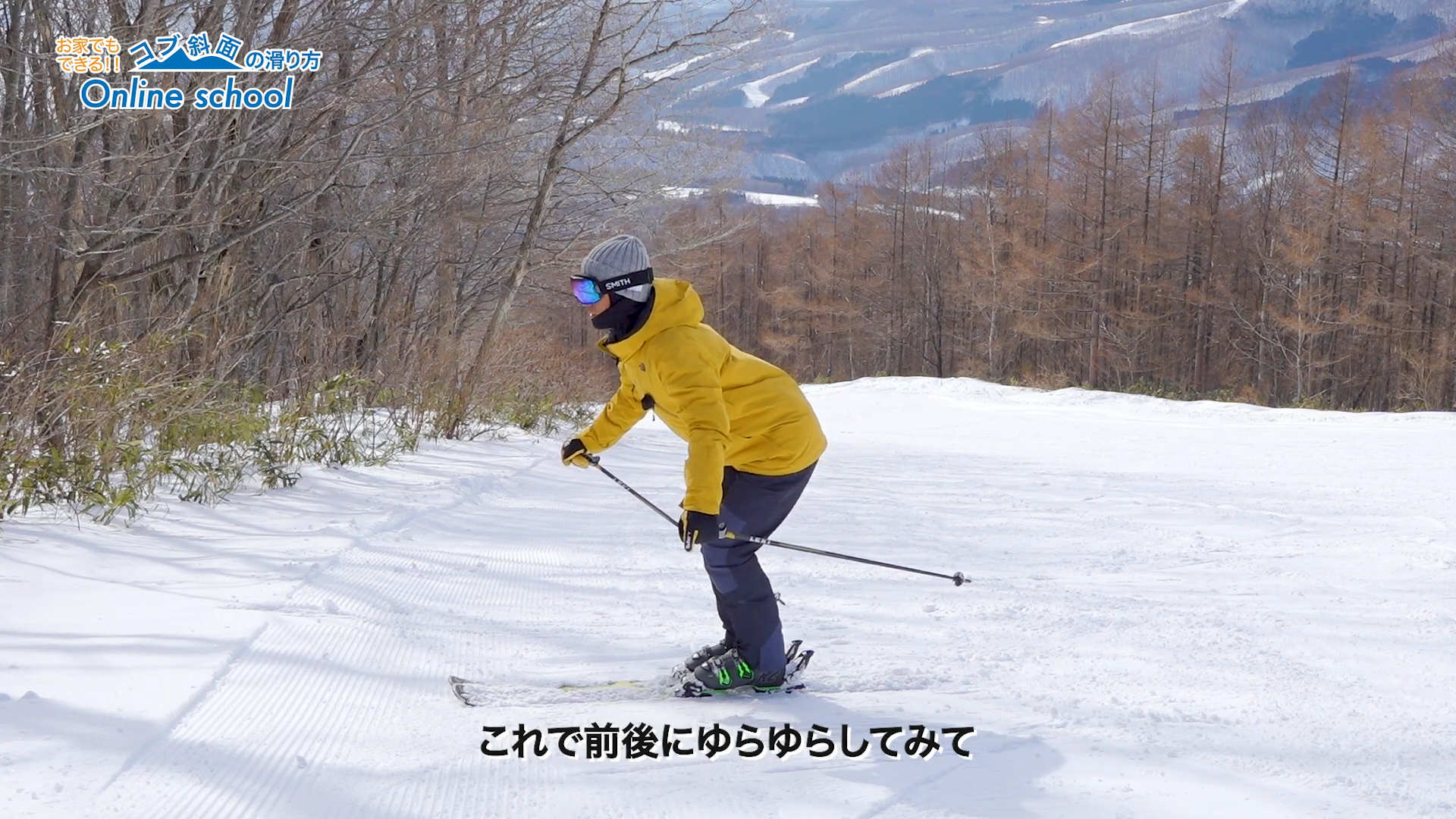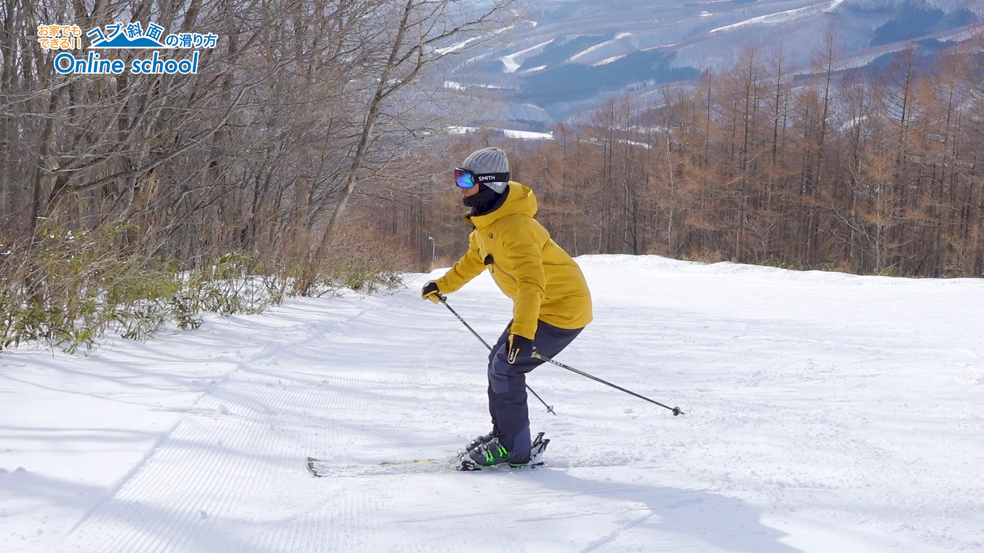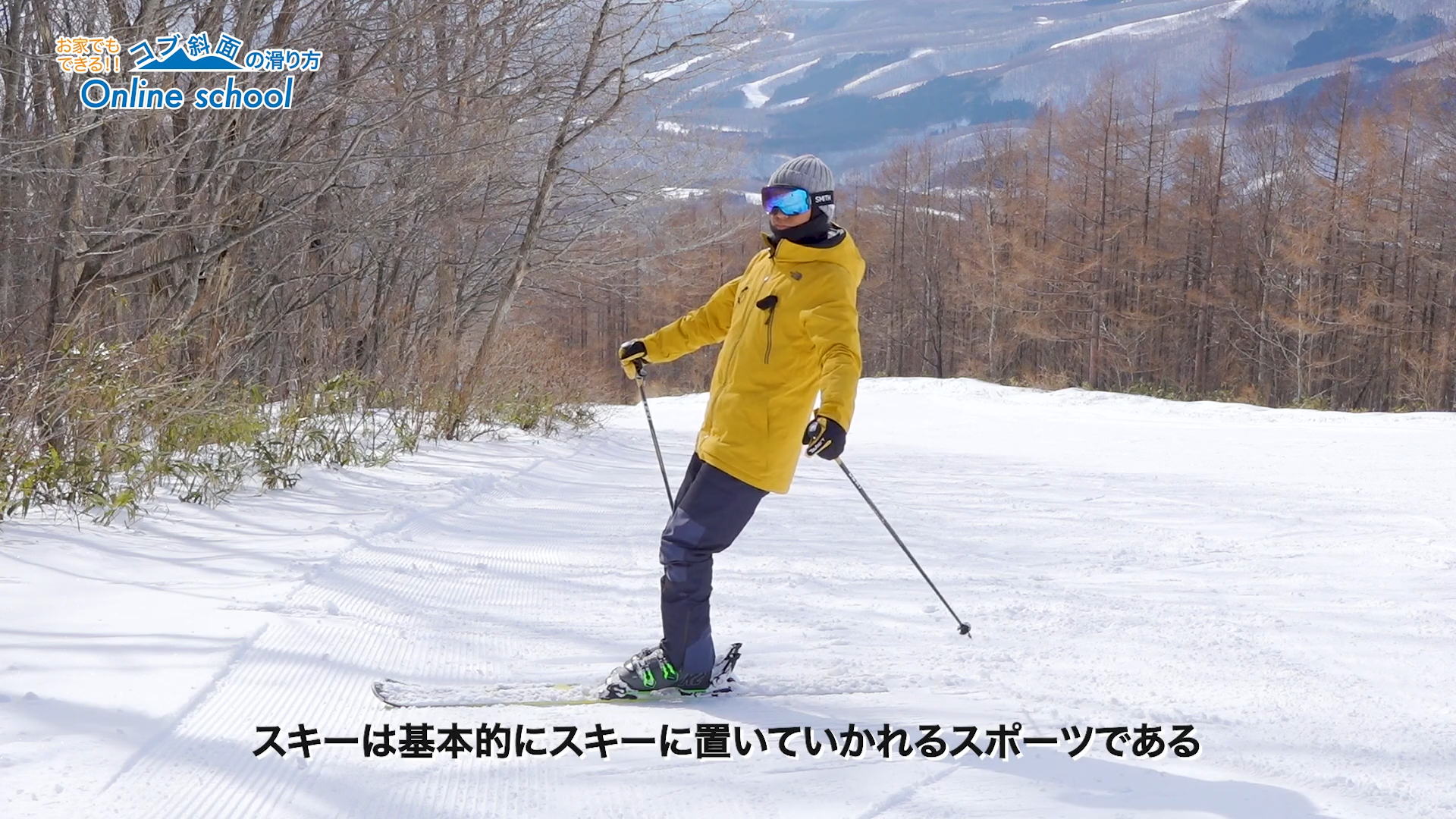 また、スキーの性能に頼らない能動的な動作レッスンとも言えるし、時には、コブという外力を受け止める受動的な面もある点が複雑です。
