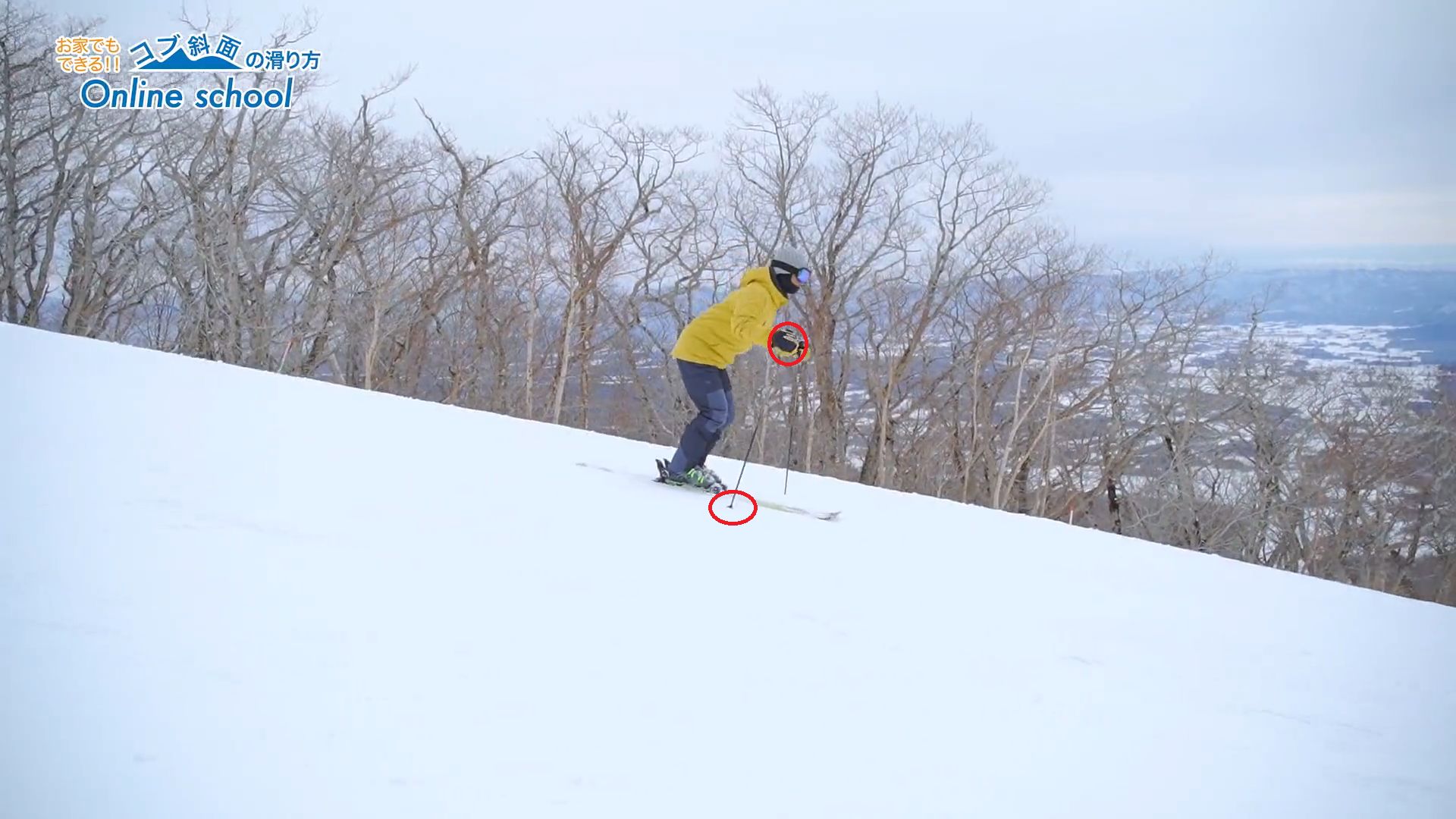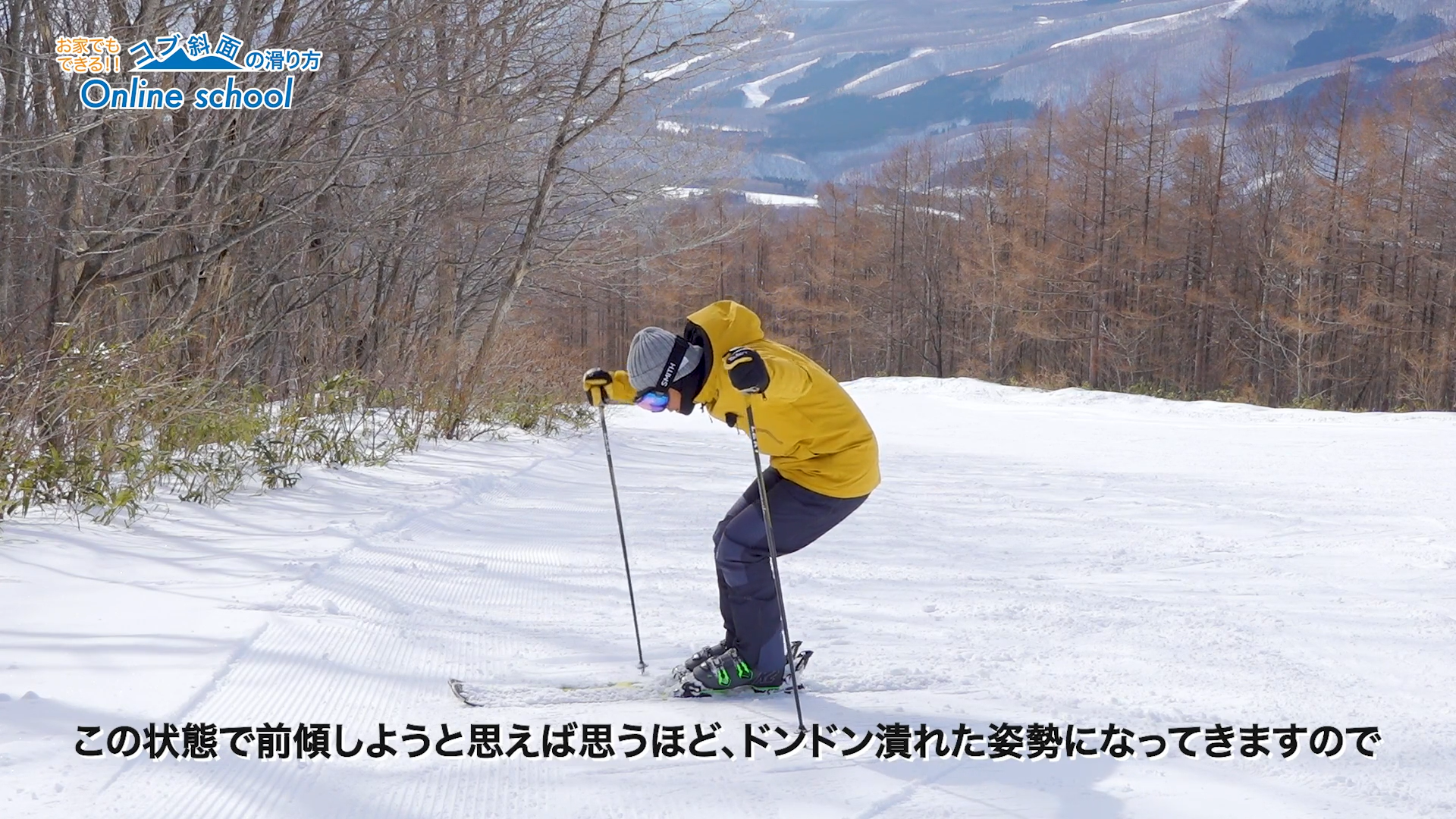 それができない場合は、この姿勢でも滑れる方法へアプローチを変える必要があります。