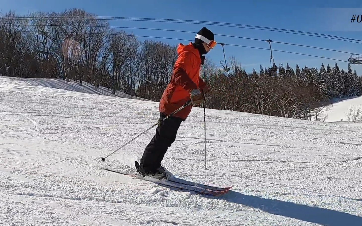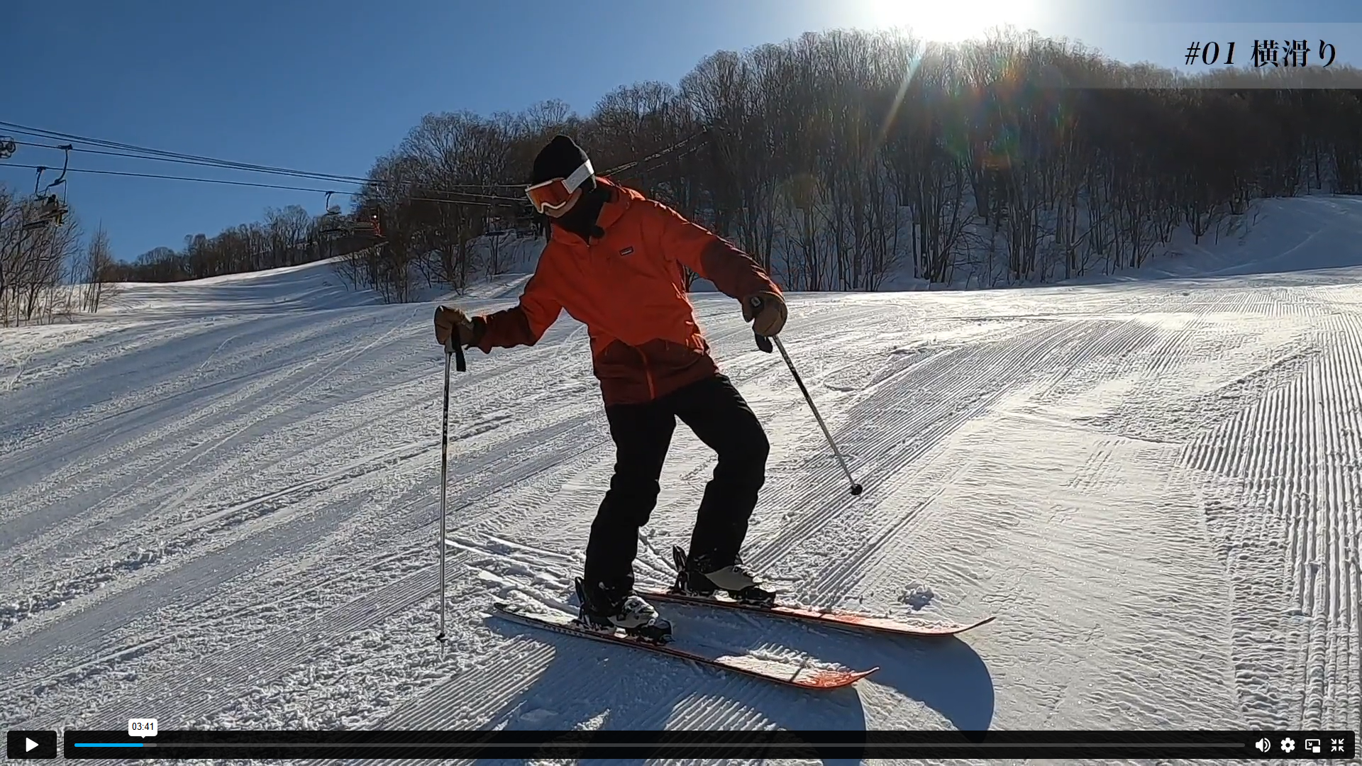 ・先ずは斜滑降(出る角度は:真横で良い)でステップのみに集中して行います。方向転換は何でも構いません。