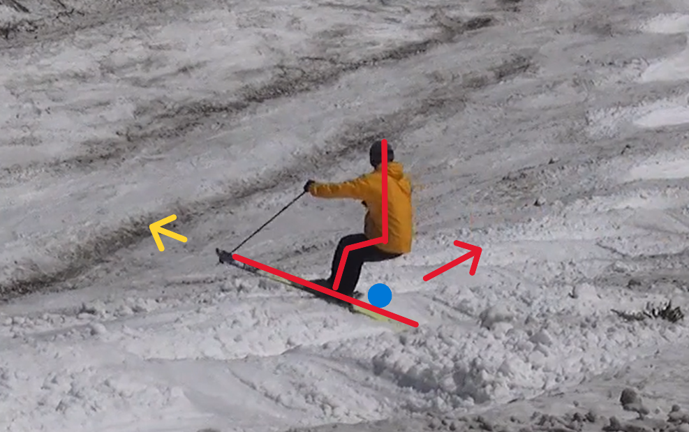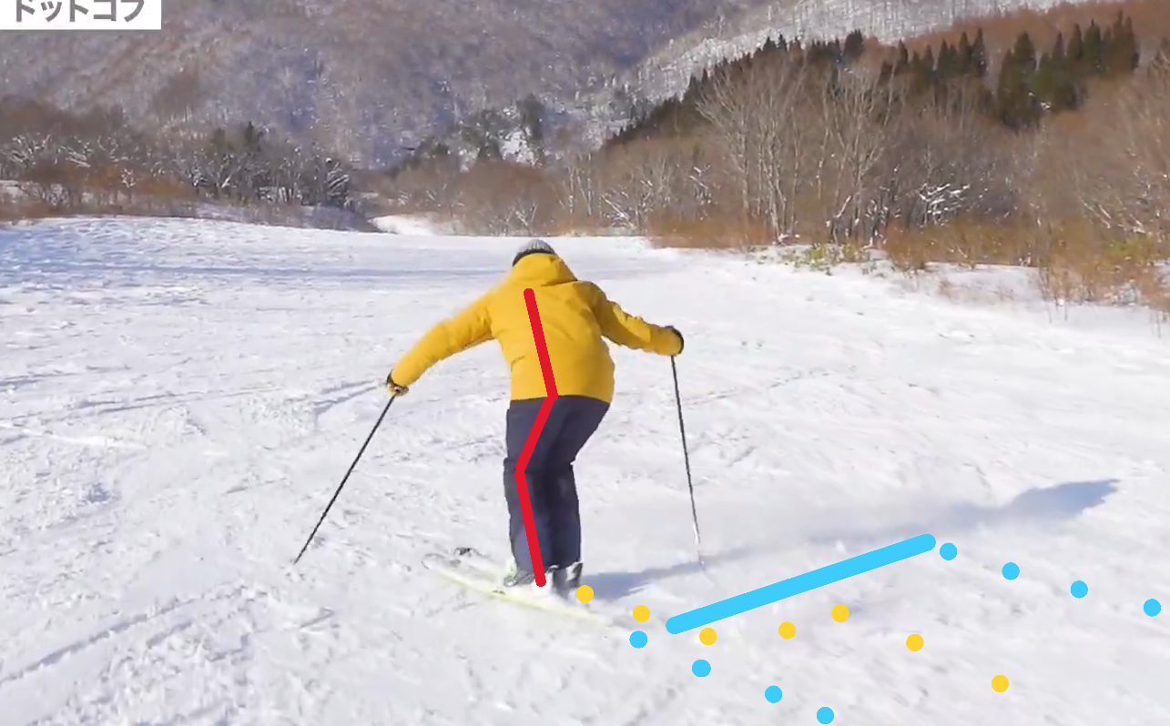 背中を傾けるだけでなく、お尻の位置を引いていく、股関節を引いていく、ヘソを雪面に向けていく、お尻の穴を空に向ける様な感じなどもあります。