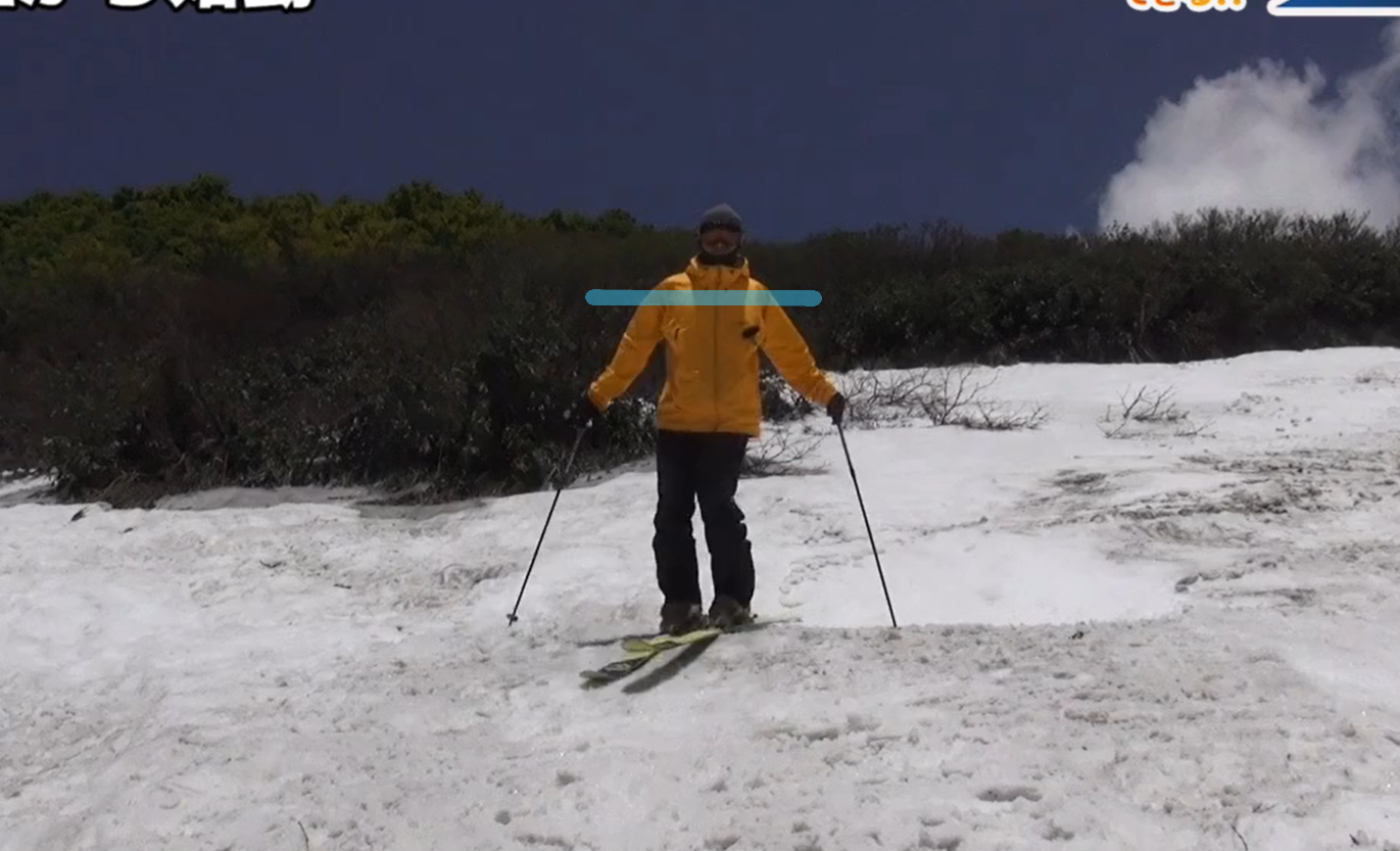 ・徐々に動かす意識を、股関節から下の意識で、最終的にはつま先でスキーの向きを変えるイメージになると良いです。