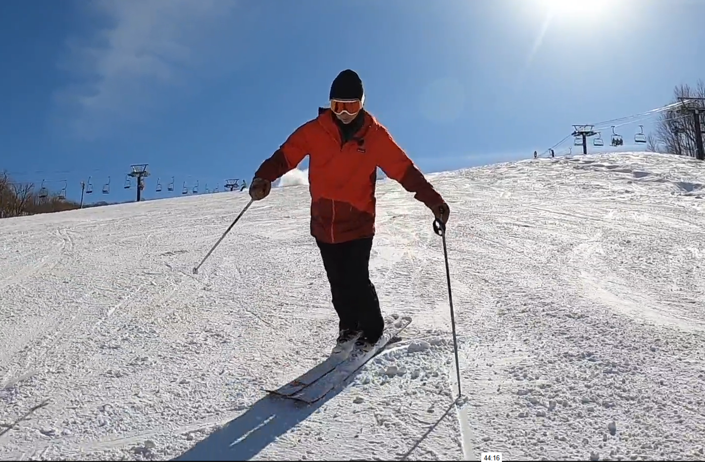 ・ツイストは全身運動で難しいですが、スキーの自力回旋と身体の下に足元を感じる事を大切にしてください。