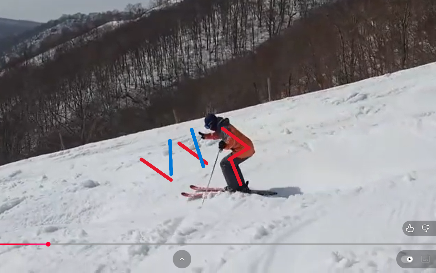 ・いった通りごめんなさい!してますね ・足の長さ逆に長くなりお尻が上がってます。ブーツが止まって身体が前に倒されるところで、ブーツを引いてますので斜面にダイブした状態です。 ・コブでもこんな事が起こっても大丈夫のなように、整地では大げさにする事が大事です。 ・知らいない力は脳は事故だと判断し思考が停止しますが、愉しいと思えばどんどん欲求が出てきます。120%安全確保でして愉しみましょう。