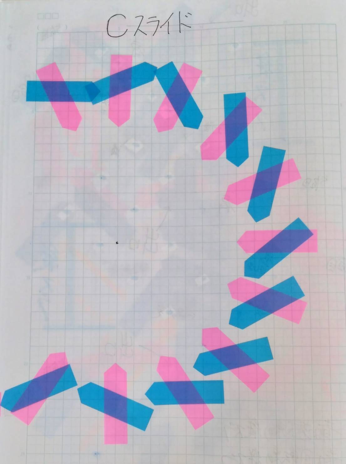 ・外手プッシュはCスライド前半の側方移動の目印にもなります。