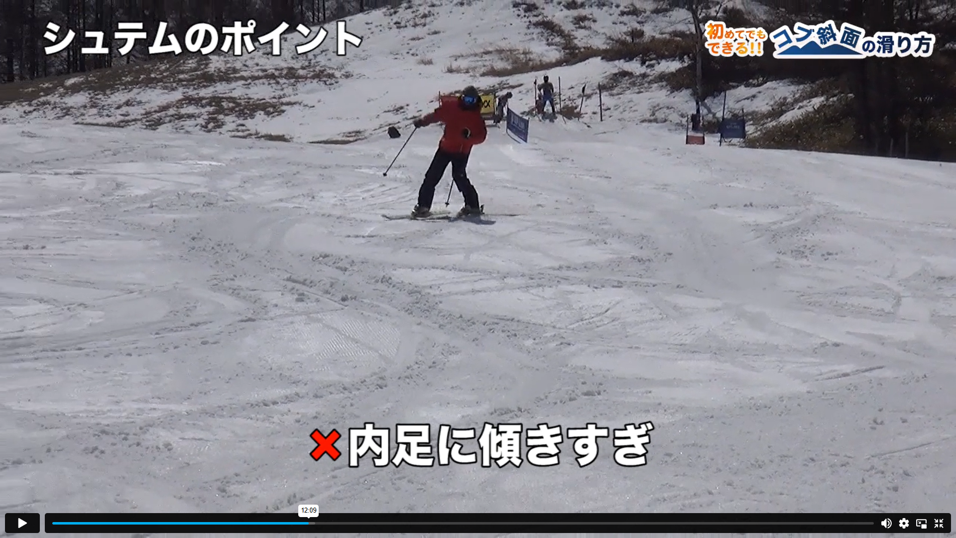 横方向への雪面抵抗のかけ過ぎや、スキー操作での傾きや、角付けなどで横方向への移動を、自ら止めてしまい落下のみが始まることが落下を進める原因となるケースも多いと思います。