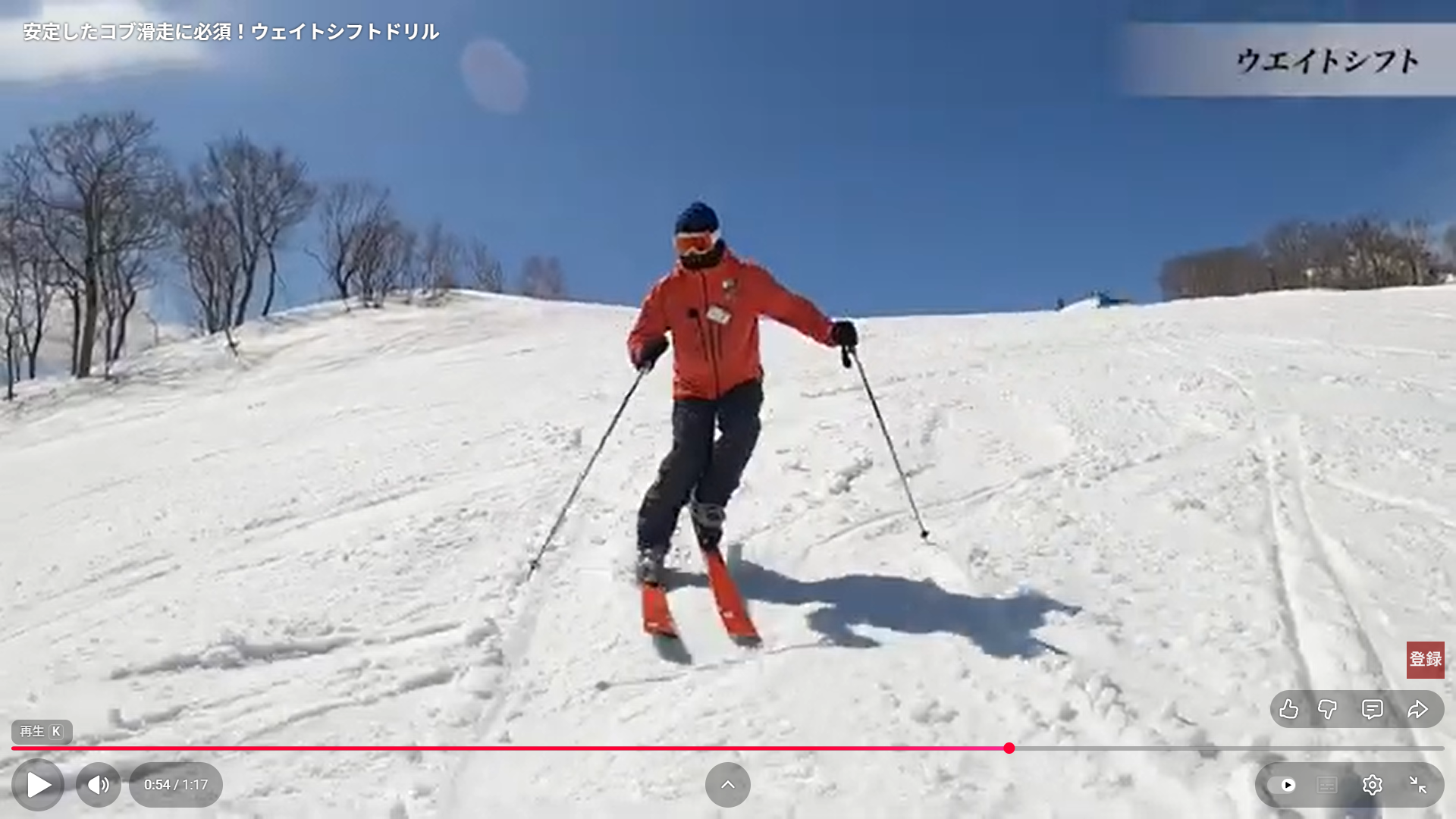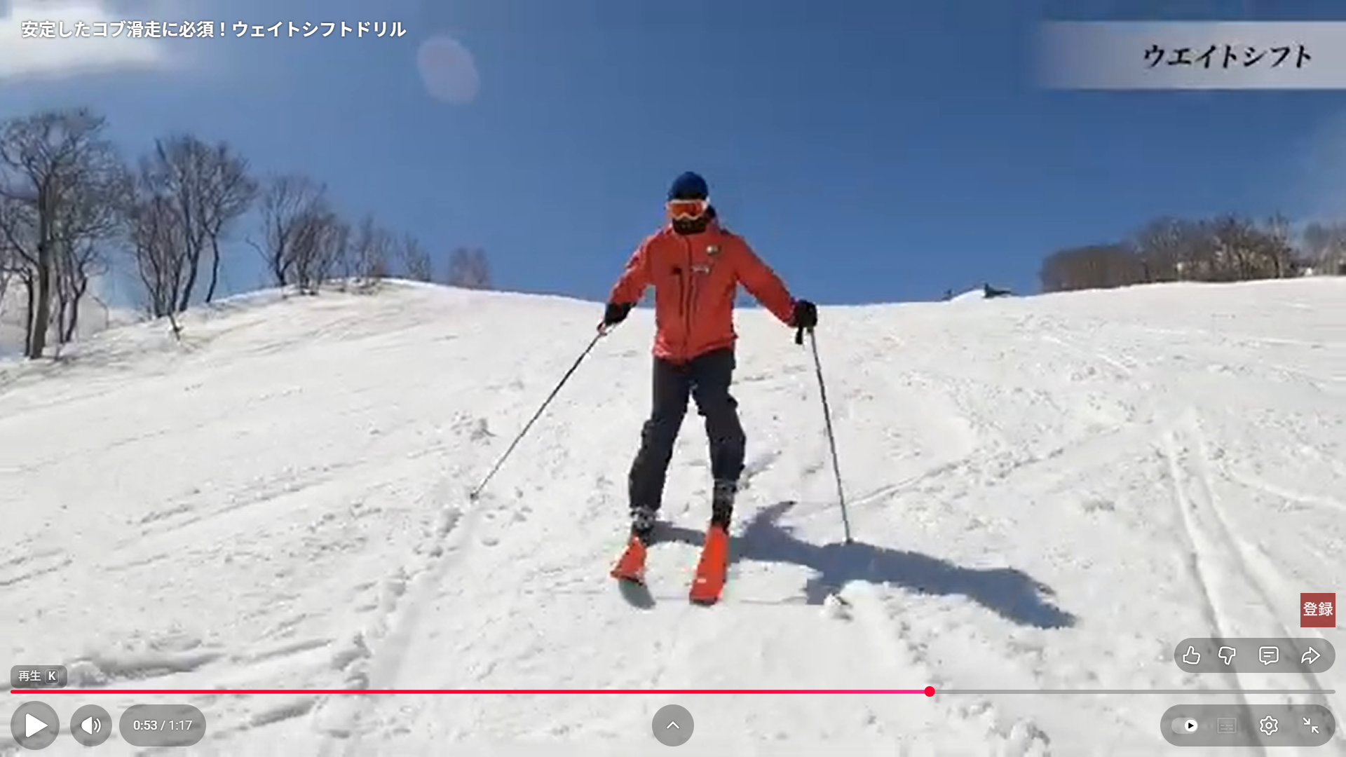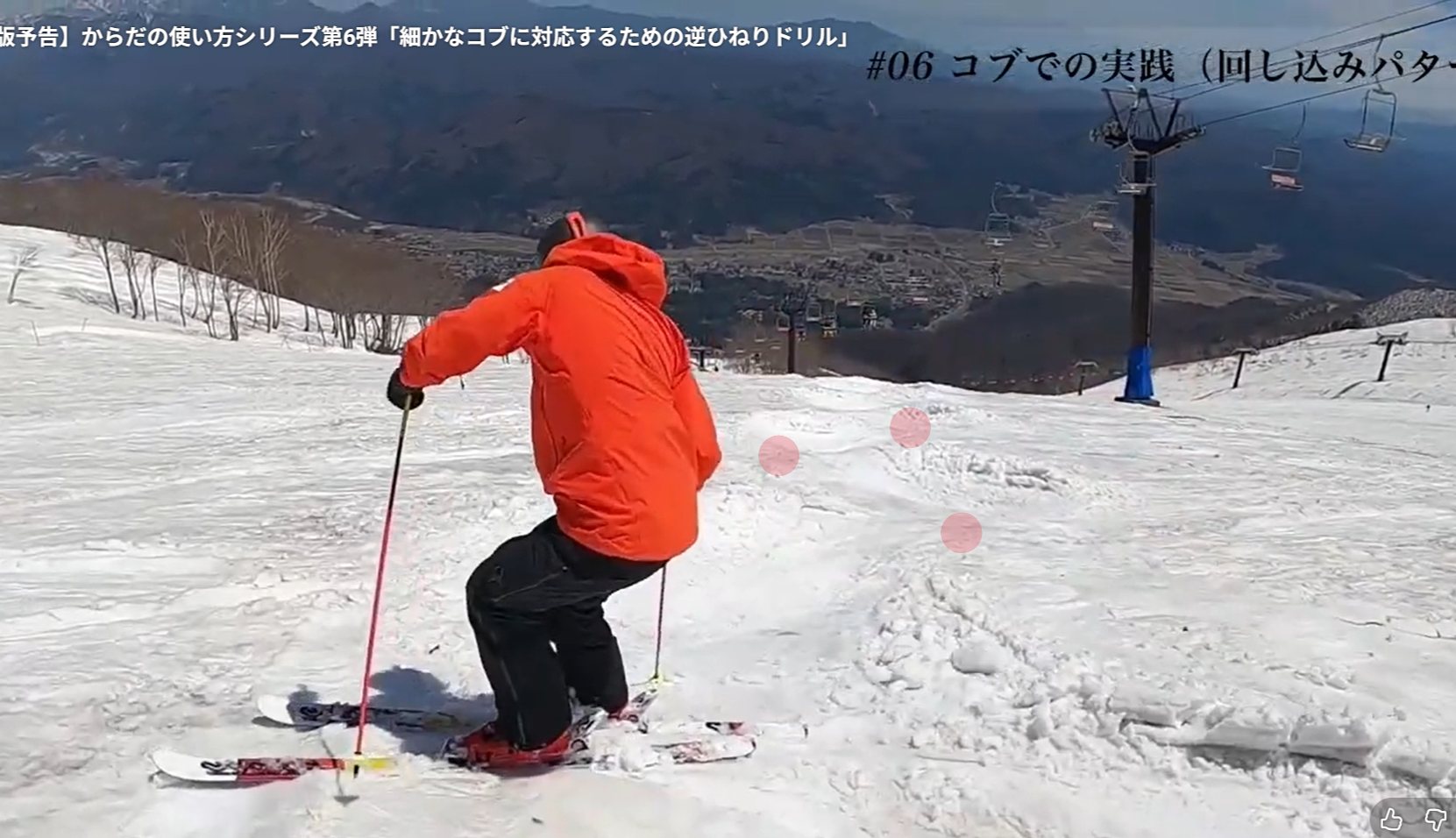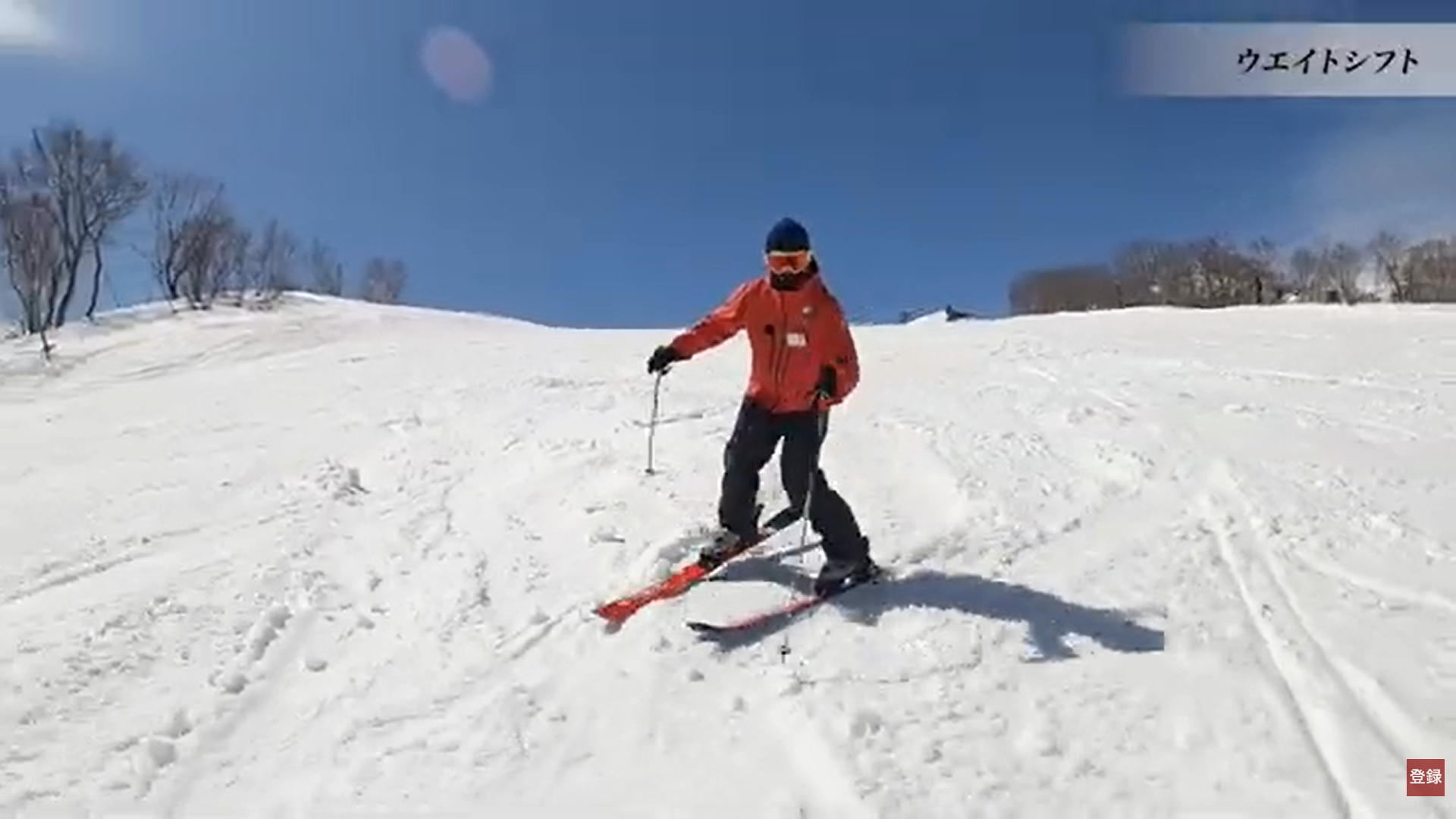 ウエイトシフトの動画の切り抜きです。実際のコブ滑走でのシュテムを利用したウエイトシフトは、これくらいの運動量が必要です。