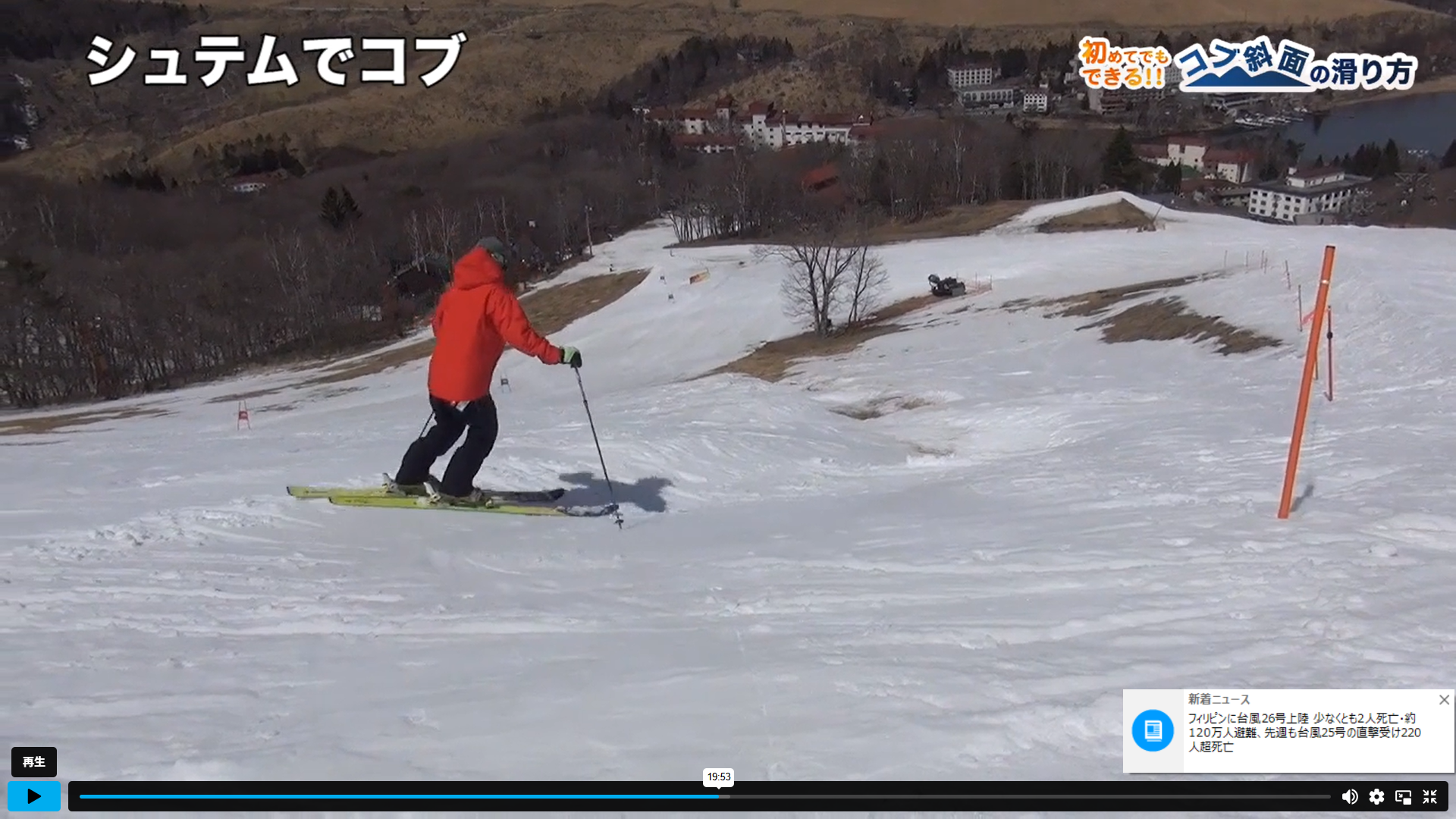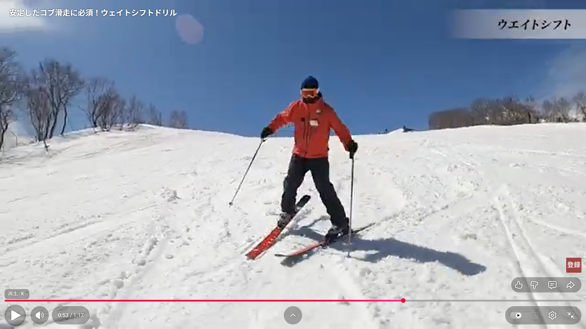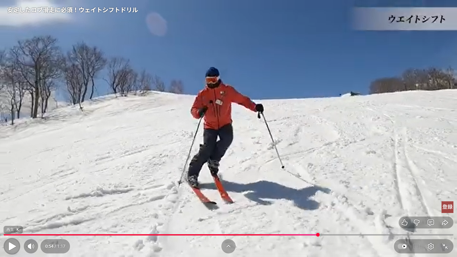 ウエイトシフトの動画の切り抜きです。実際のコブ滑走でのシュテムを利用したウエイトシフトは、これくらいの運動量が必要です。