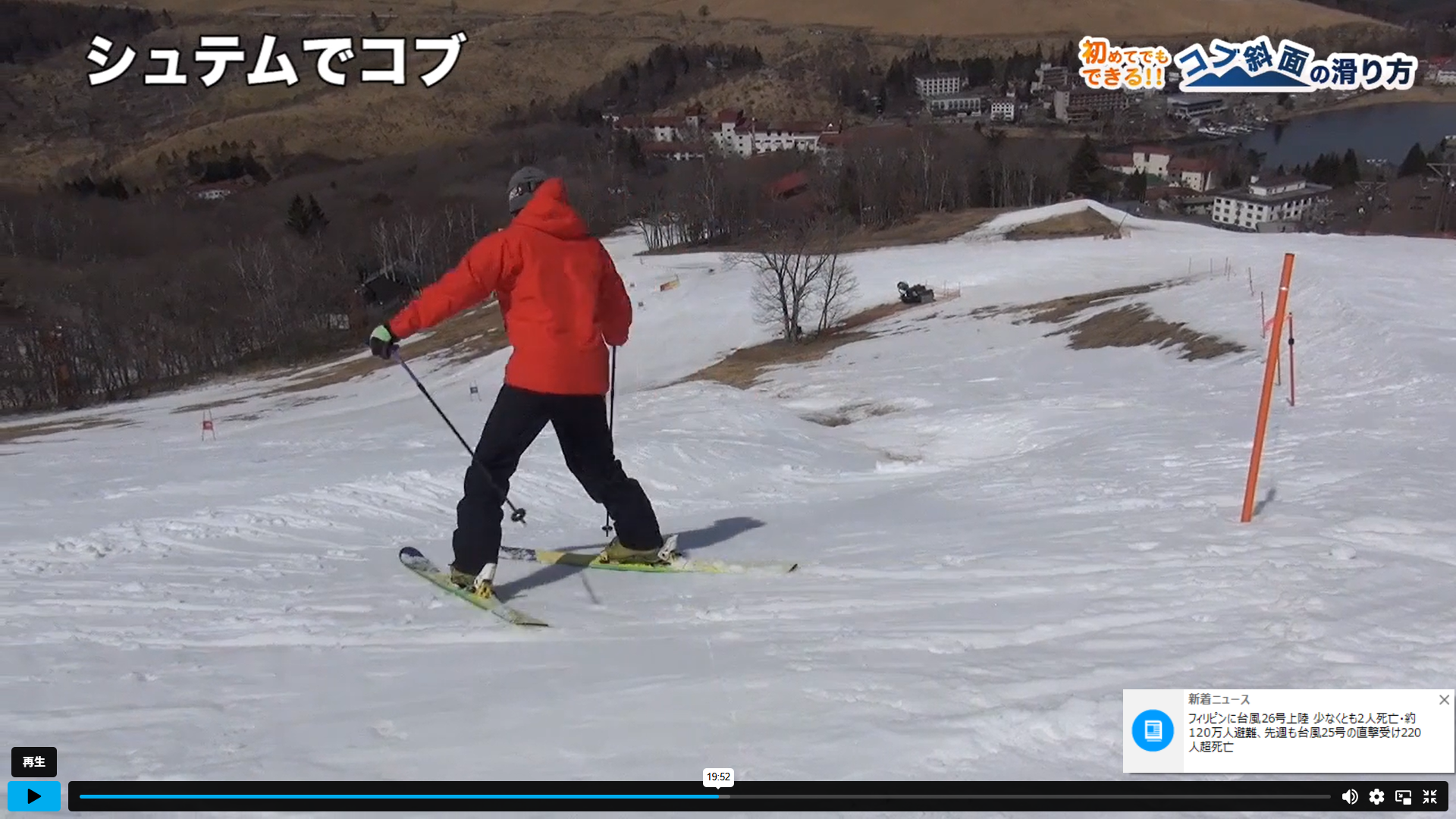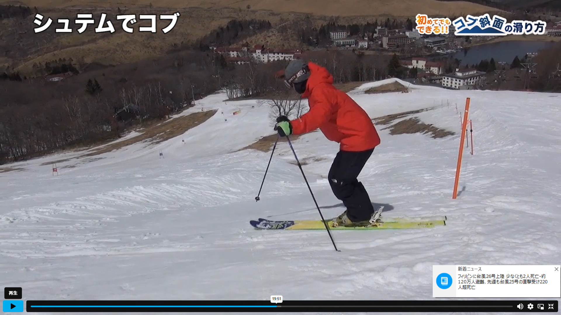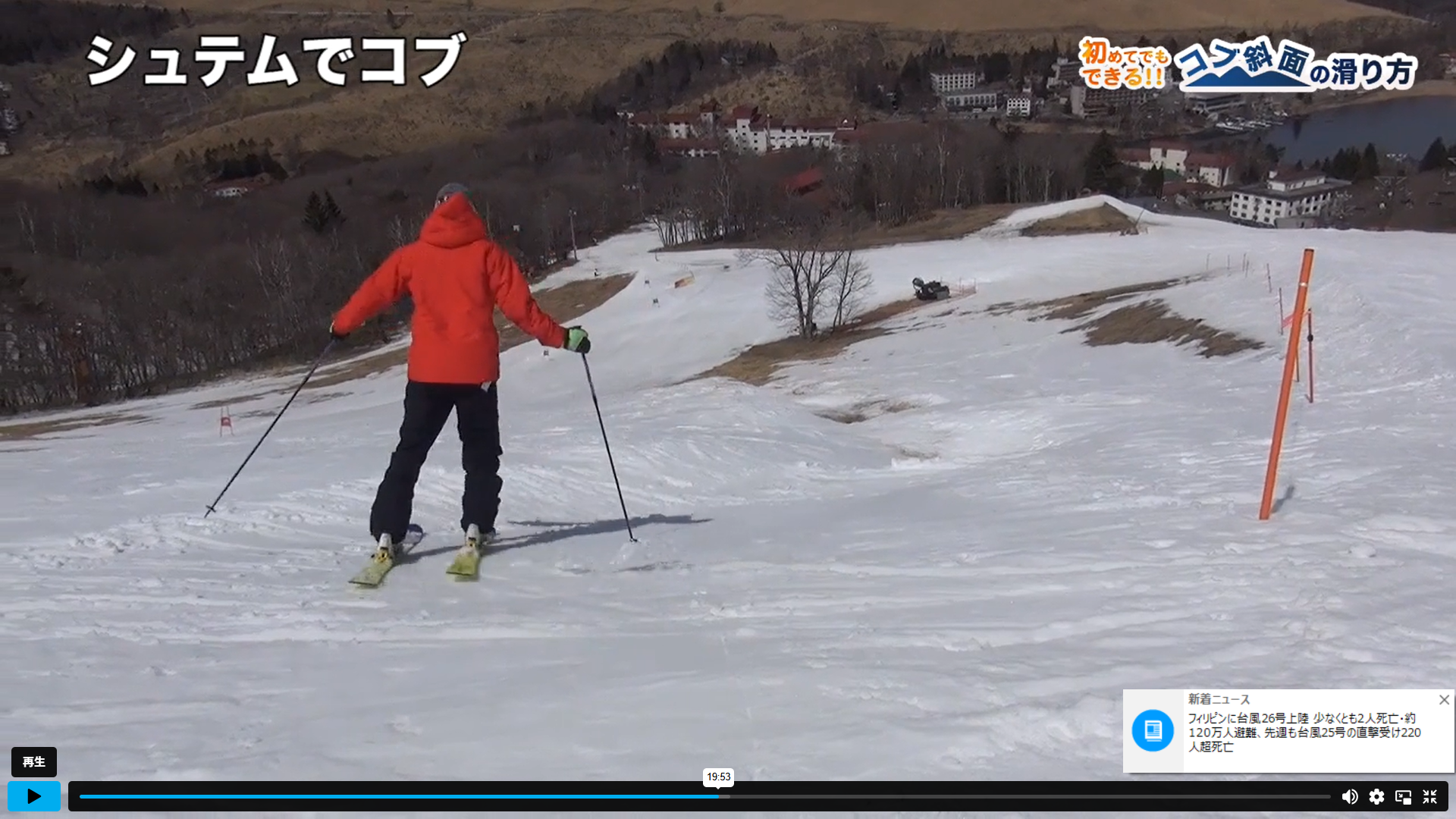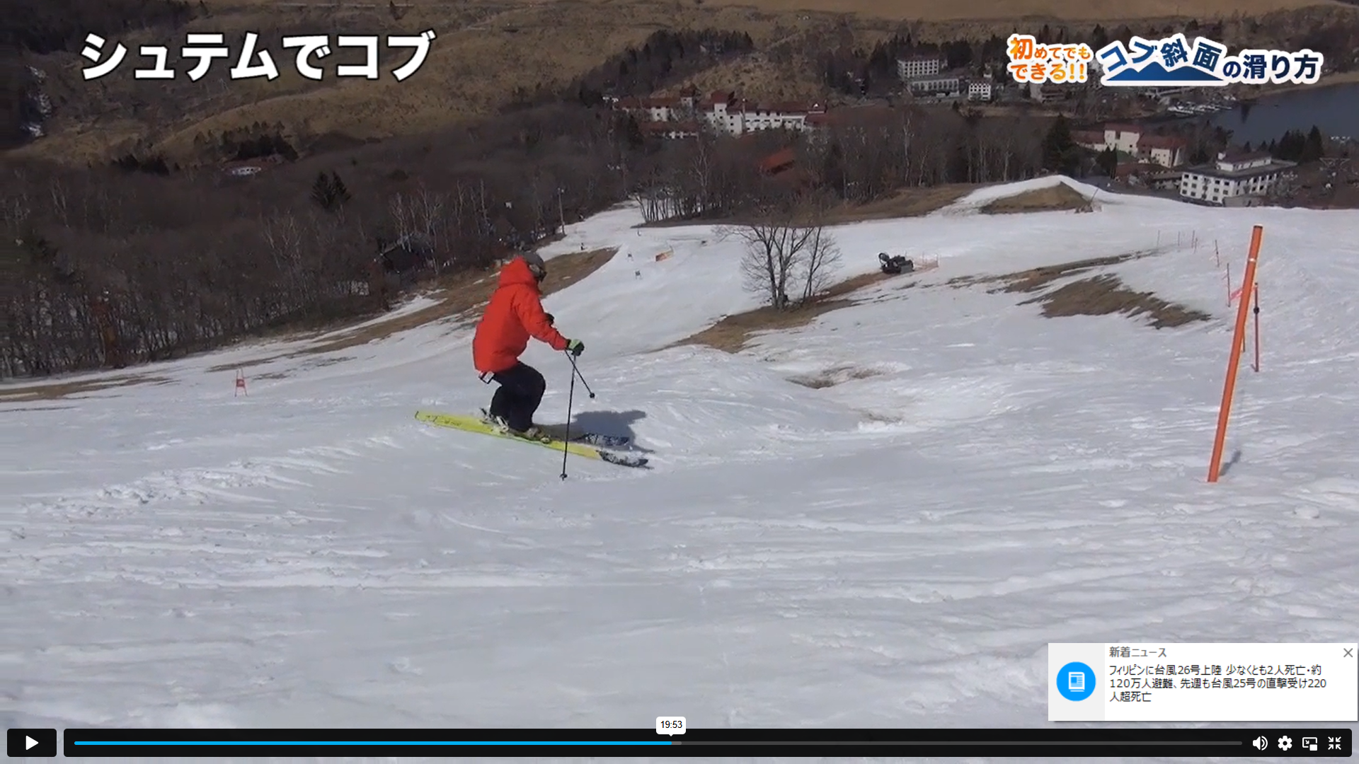 ウエイトシフトの動画の切り抜きです。実際のコブ滑走でのシュテムを利用したウエイトシフトは、これくらいの運動量が必要です。