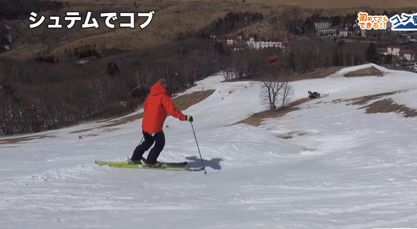 また、スキーの性能に頼らない能動的な動作レッスンとも言えるし、時には、コブという外力を受け止める受動的な面もある点が複雑です。