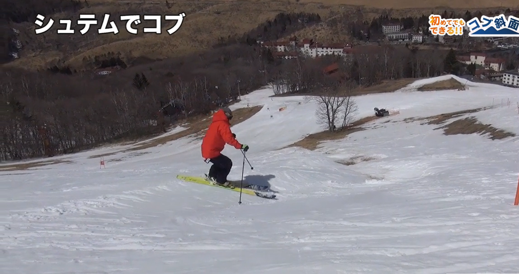 ・コブ滑走中でもイメージをしやすいので、回転系でひねりが弱い方でもCスラの後半に粘ることができます。