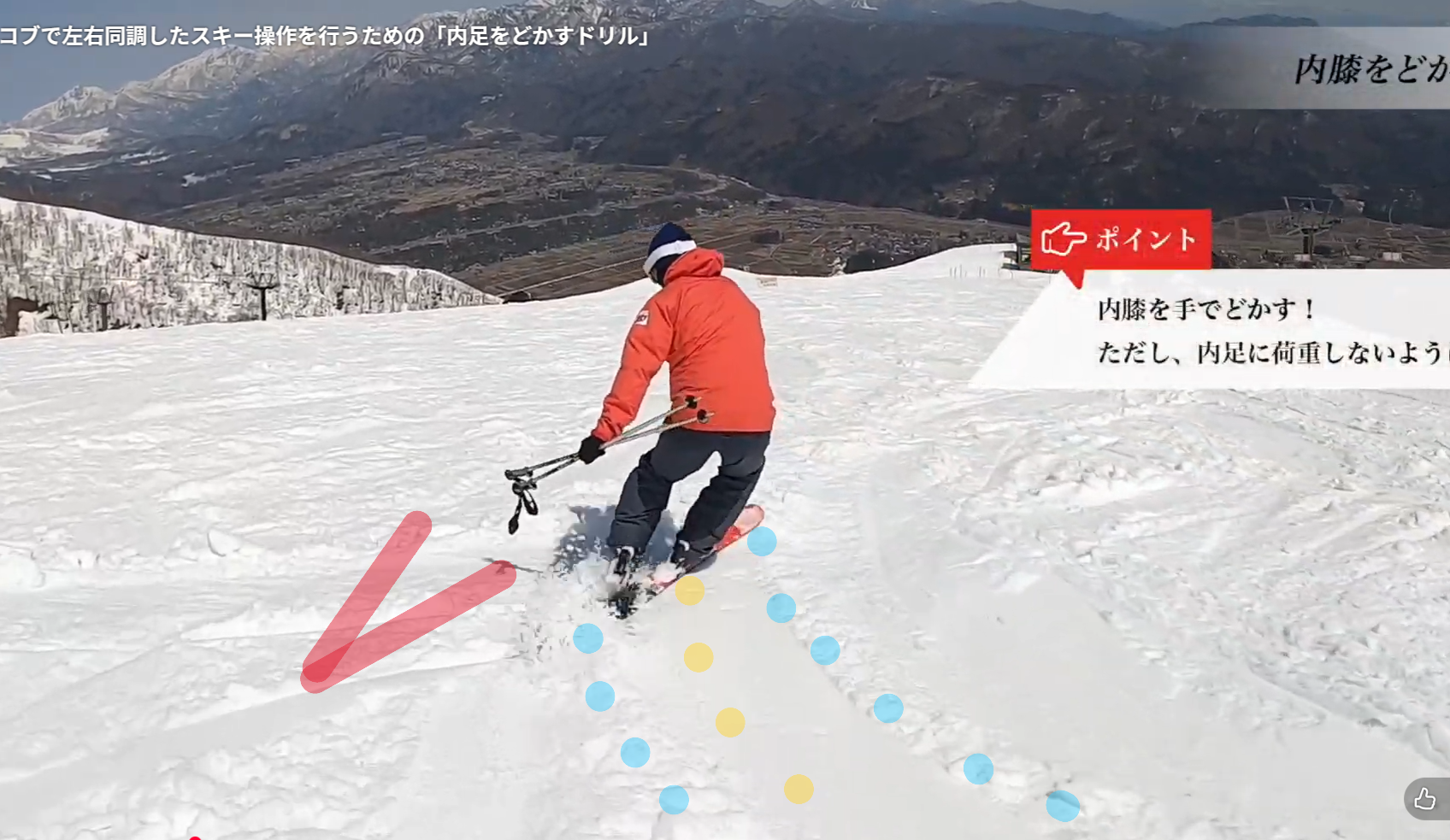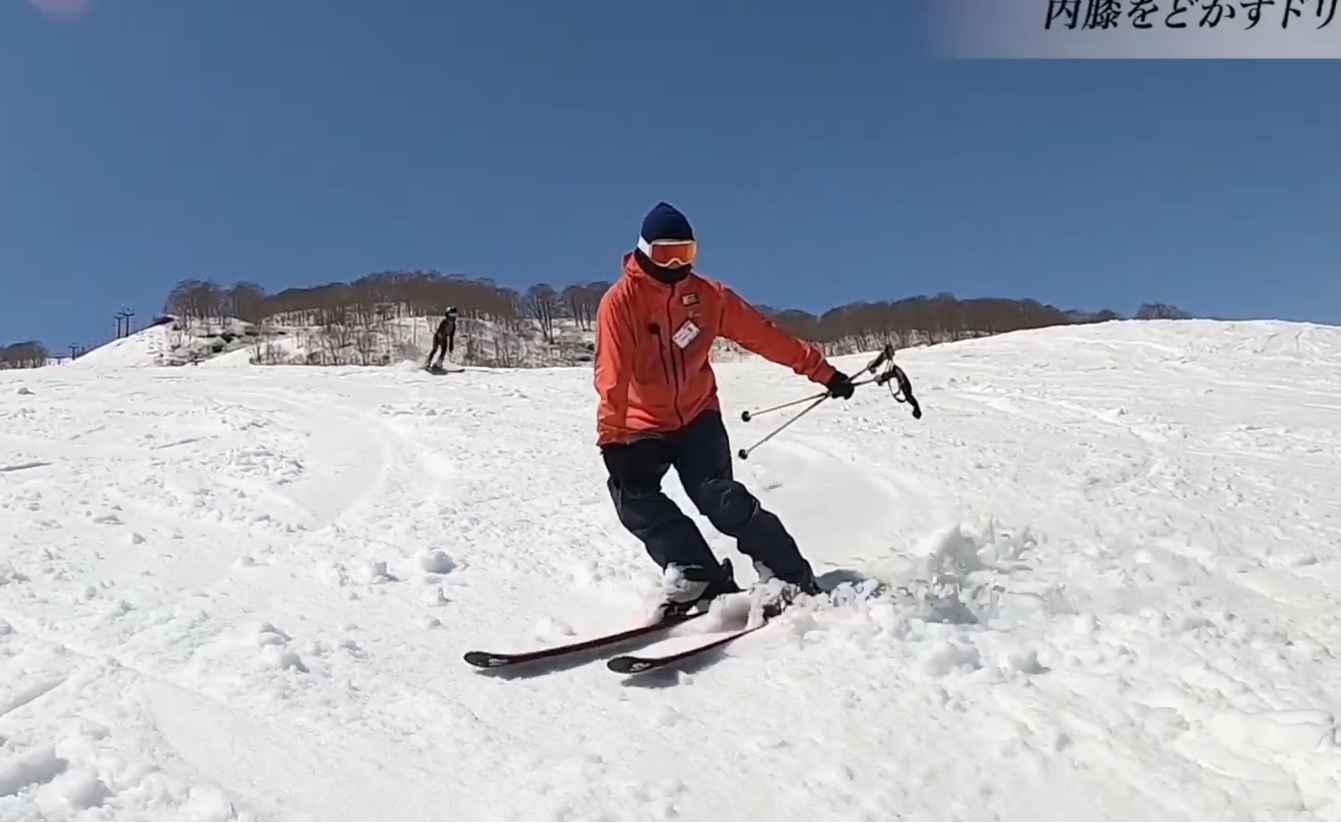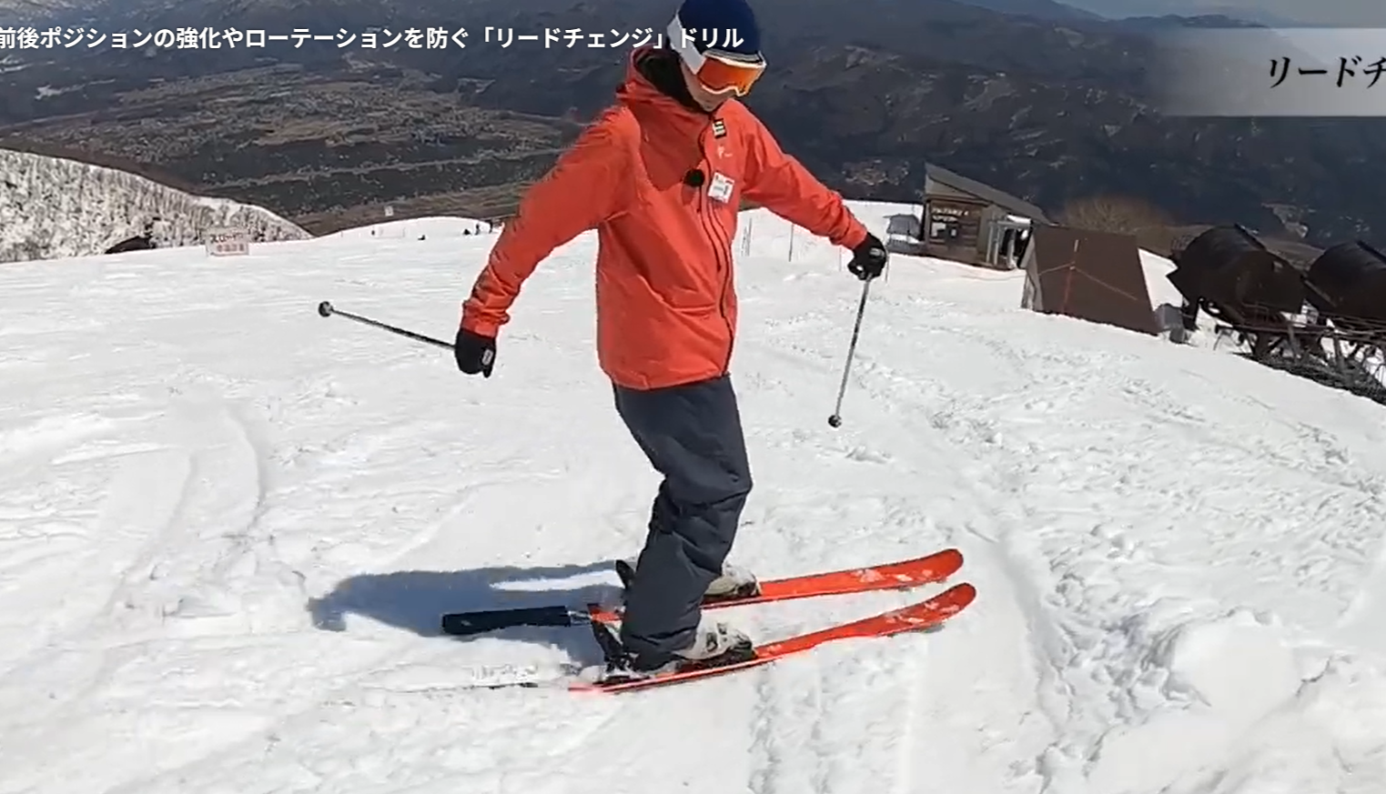 ドリルは整地でやっていますので斜面に対して位置で考えがちですが、単に運動だと考えるとスキーの向きと身体の位置関係でも考えることが出来ます。
