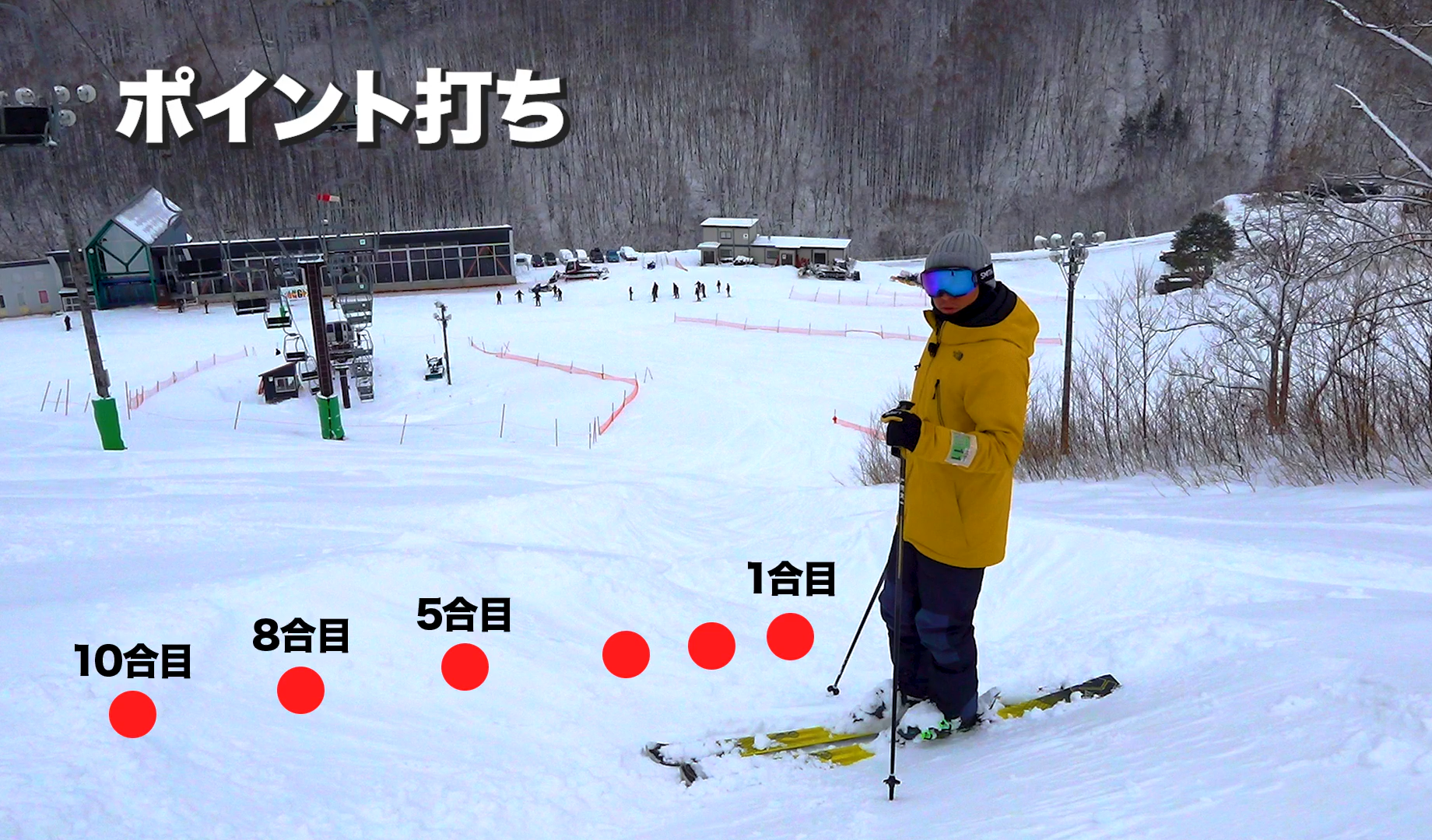 ■Cスライドは10合目で1コブ停止をします。出口を抜けて切り替えす前にターンを切り上げて止まる方法があります。