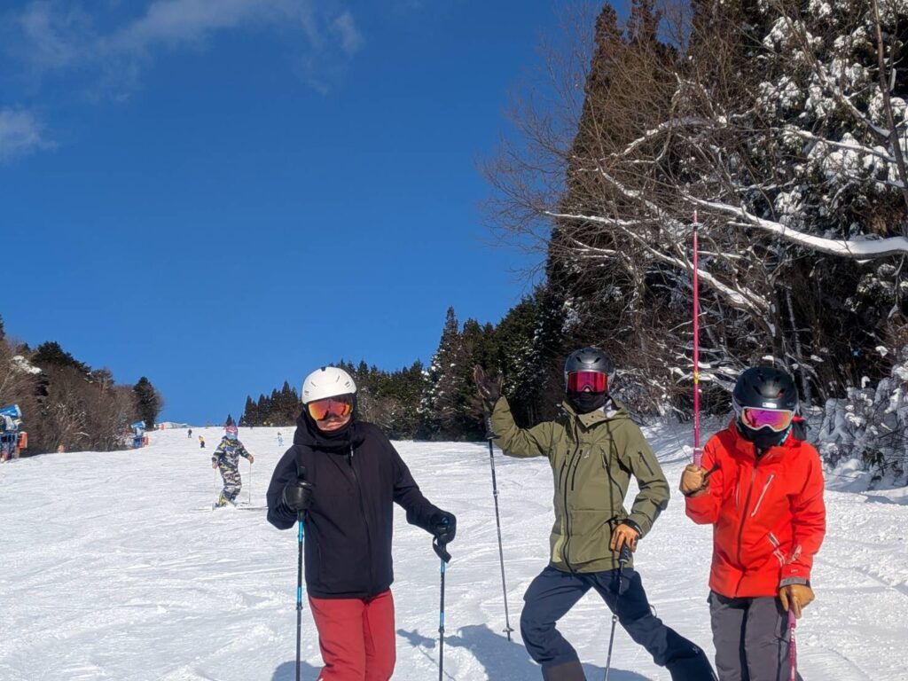 斜行から山脚1本と言うように、片脚で立って斜行をしました。山脚で立つのが苦労しました。山脚スキーのアウトエッジ、小指側を意識して、そこに重さを乗せる様に立つと立ちやすです。
