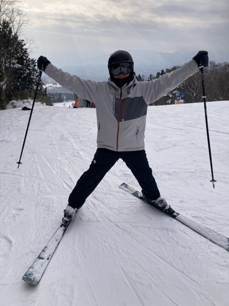 スキーブーツのつま先はフォールラインの対して真横にし、斜面に対し前傾を保ちつつ谷に落下し、つま先の方向を180度変えながら何歩か下る事で板を装着した状態ではなかなか体験出来ない丹田の落下する感覚を感じていただけたのではないでしょうか?