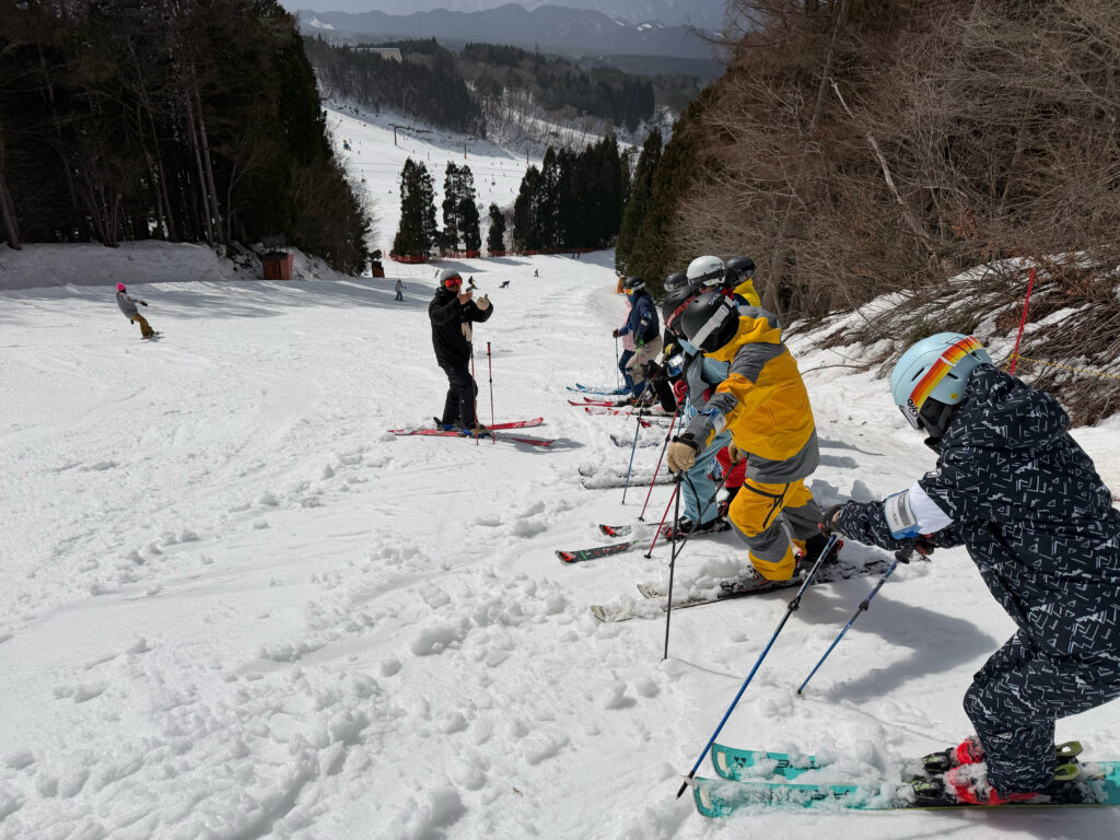 すぐコブにぶつかってすぐに立ち上がるとスキーがクルッと早く回り過ぎて、横スライド色が強くなります。