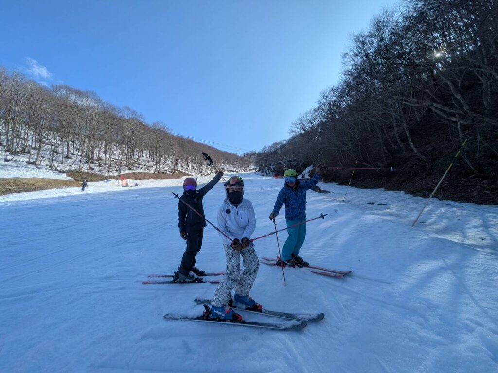 ホッキーストップ45度を使って、コース端の縦コブを滑る練習もしました。ここは横スライドと言うよりも縦スライド意識なのですが、そこはあまり意識しなくても、ホッキーストップ45度で攻略出来てくると思います。