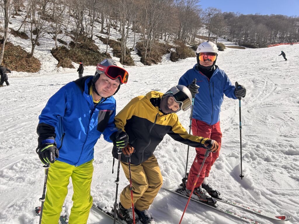 午前のフラットバーンで斜滑降から急停止、半制動を練習。