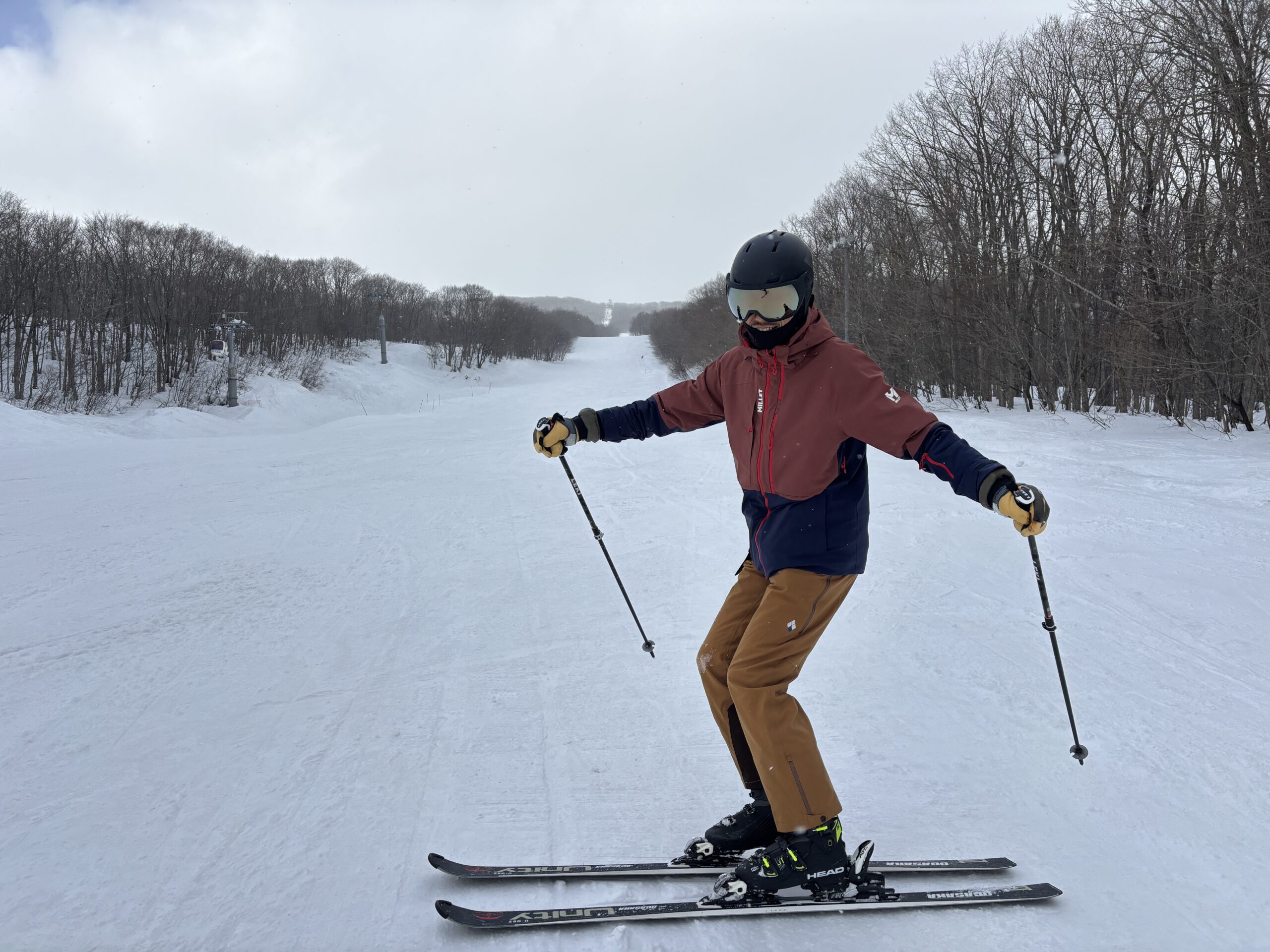 コブ斜面の中で溝内側は板をずらしやすいスペースであることから、溝内側のラインでズルドンの滑りをメインに練習しました