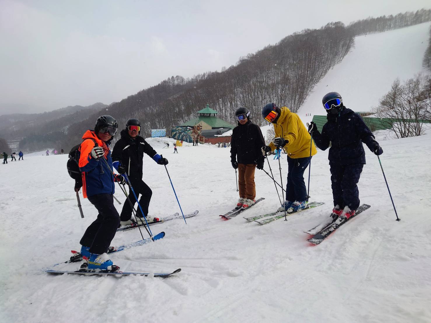 *スキートップから30度くらいの位置めがけ、膝・おへそ・山側の肩から体重を載せる意識で行いました。